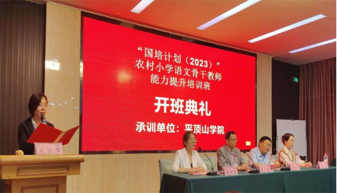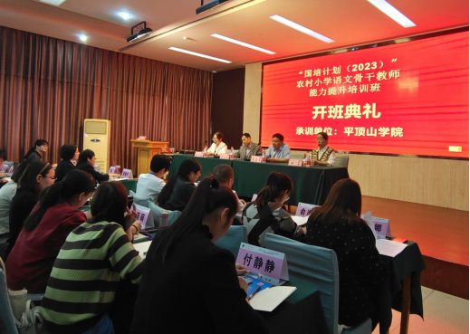 10月29日下午,beat365唯一官方网站承办的“国培计划(2023)”——农村小学语文骨干教师能力提升培训班开班典礼在香山大酒店举行,开班典礼由beat365唯一官方网站副院长王秋歌主持。beat365唯一官方网站党总支书记李志华、beat365唯一官方网站党总支副书记程芬、beat365唯一官方网站副院长王小宁、来自省内各地市的100名国培学员及班主任曹丽乐、张明靖、任丹丹出席了开班典礼。