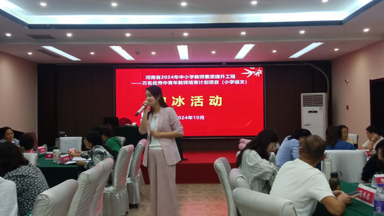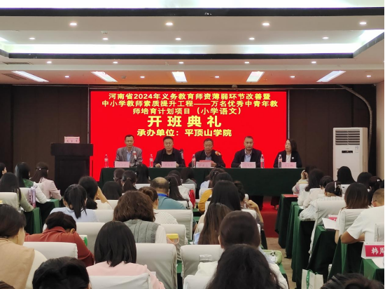 2024年10月13日下午,河南省2024年义务教育师资薄弱环节改善暨中小学教师素质提升工程——万名优秀中青年教师培育计划(小学语文)beat365唯一官方网站培训班开班典礼在金沙湾大酒店六楼会议室顺利举行,开班典礼由beat365唯一官方网站副院长王小宁主持。beat365唯一官方网站副校长于长立、继续教育学院院长马书军、beat365唯一官方网站党委书记李志华、beat365唯一官方网站院长王小鹤、班主任曹丽乐、任丹丹以及来自郑州、南阳等地市的一百位参训教师出席了开班典礼。