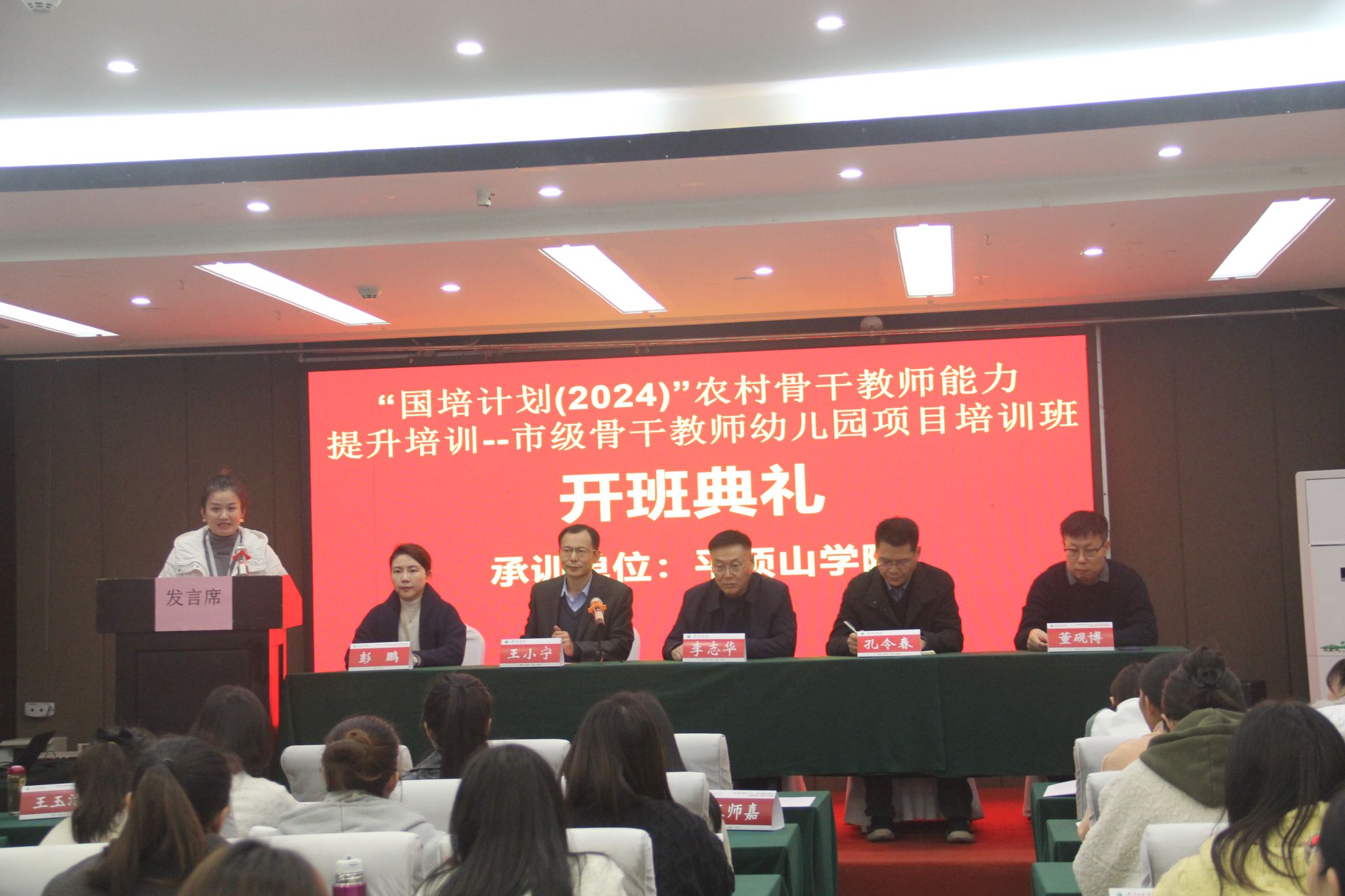 本次培训班的主题为“提升健康领域园本研修能力,做幼教创新型骨干教师”,旨在提升农村骨干教师的专业能力,为教育事业注入新的活力。开班典礼由beat365唯一官方网站副院长王小宁主持,beat365唯一官方网站党委书记李志华、继续教育学院副院长孔令春等领导出席并发表重要讲话。学前教育系党支部委员彭鹏、心理学博士董砚博也列席了此次典礼。