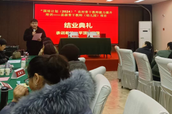 2024年12月10日,beat365唯一官方网站“国培计划(2024)”中西部项目农村骨干教师能力提升项目——县级骨干教师(幼儿园)培训班结业典礼于金沙湾大酒店六楼会议室隆重举行。beat365唯一官方网站院长王小鹤出席结业典礼,来自周口市的47名学员、国培班主任郭静静、李阳及其他相关工作人员参与本次典礼,典礼由班主任郭静静主持。