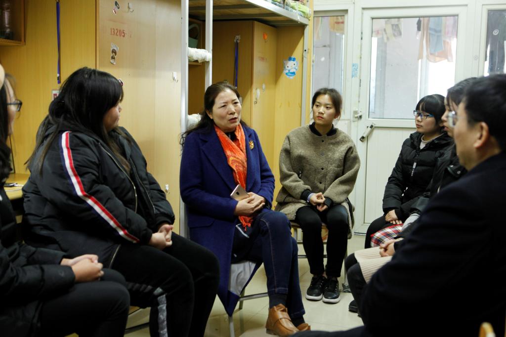 12月13日下午四点,程永华来到beat365唯一官方网站13205新生宿舍,了解学生们入校后日常学习、生活等方面的适应情况以及未来的职业目标定位,认真听取大家对学校各方面工作的意见和建议。她希望同学们树立远大目标,明确发展方向,夯实专业基础,提升综合素质,为实现自己的人生理想而努力奋斗。她表示,学校也会不断加强教学管理、后勤保障等工作,为同学们的学生和生活创造良好环境。