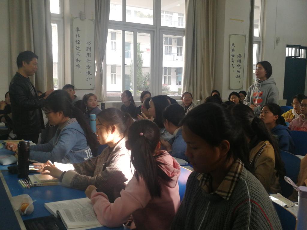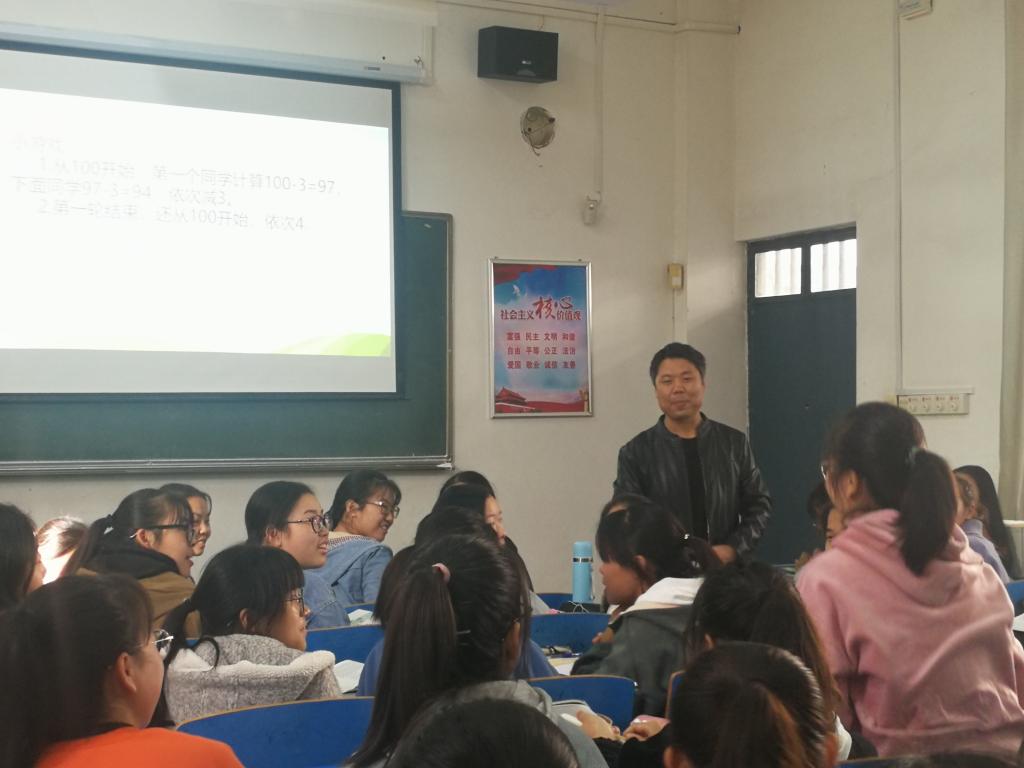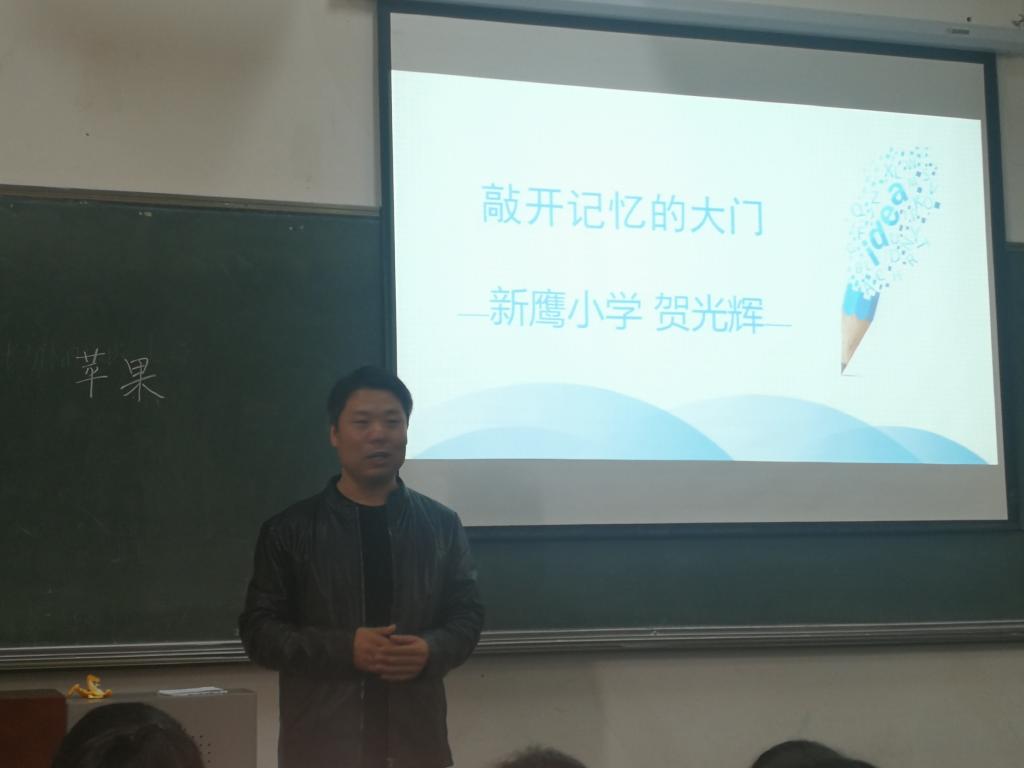 2019年11月15日上午,beat365唯一官方网站行业教师,平顶山市终身教学名师新鹰小学贺光辉老师在1104教室,为beat365官网2019级小学教育专业学生进行了“敲开记忆大门”的讲座。