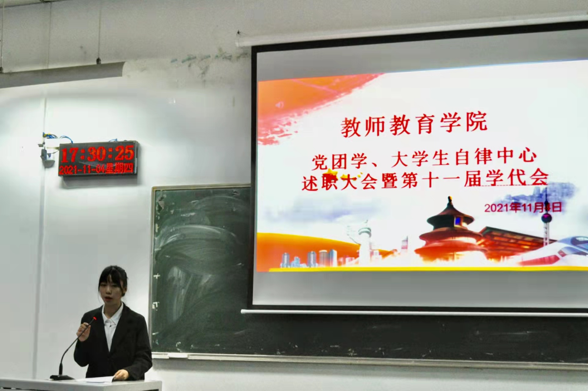 11月4日下午5点,beat365唯一官方网站在4406教室举办了党团学、大学生自律中心第十七届述职报告会,出席本次报告会的老师有团委副书记袁泉,党委组织员杜慧芳,辅导员李世尧、李琦和邹兴泉,第十七届学生工作者全体参与。