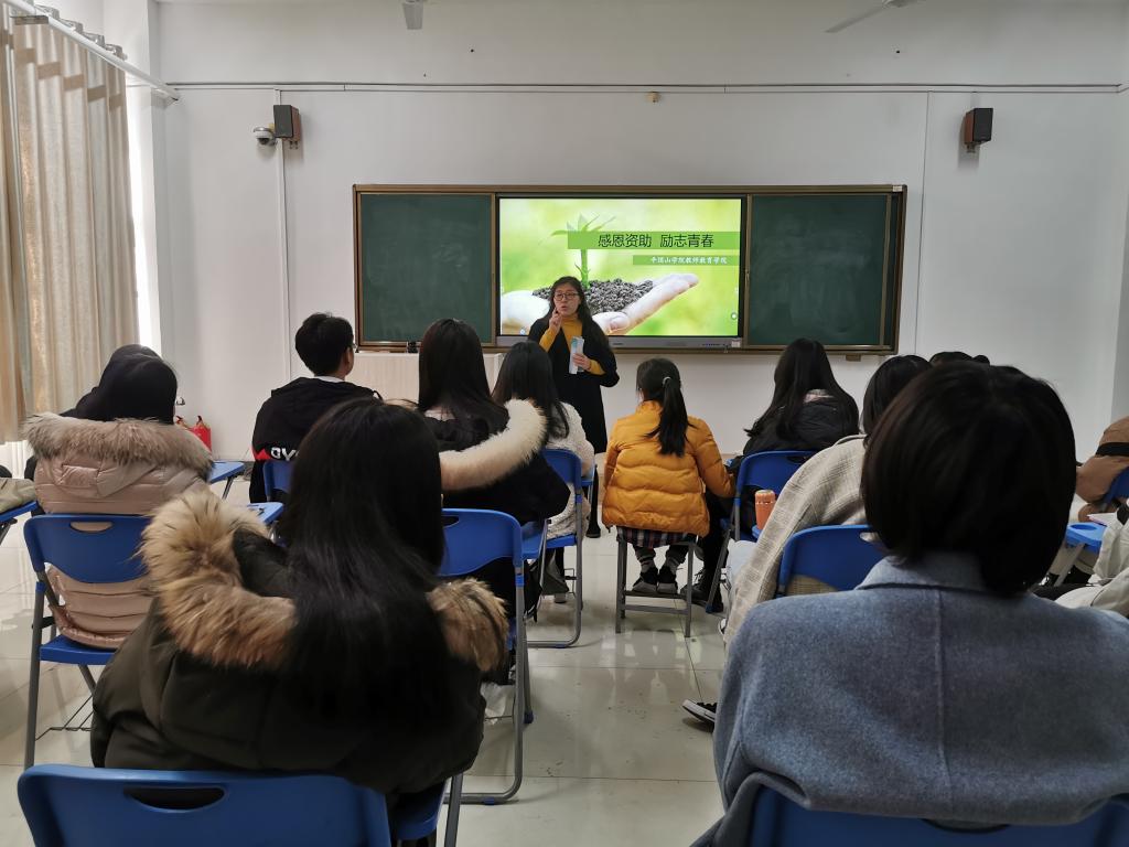 为进一步做好学生资助政策宣传活动,让所有学生知晓并了解资助政策。2019年12月27日,邹兴泉老师对beat365官网2019级全体学生以及其他年级受资助学生进行了“感恩教育”资助政策宣讲,同学们按时参加了本次宣讲。
