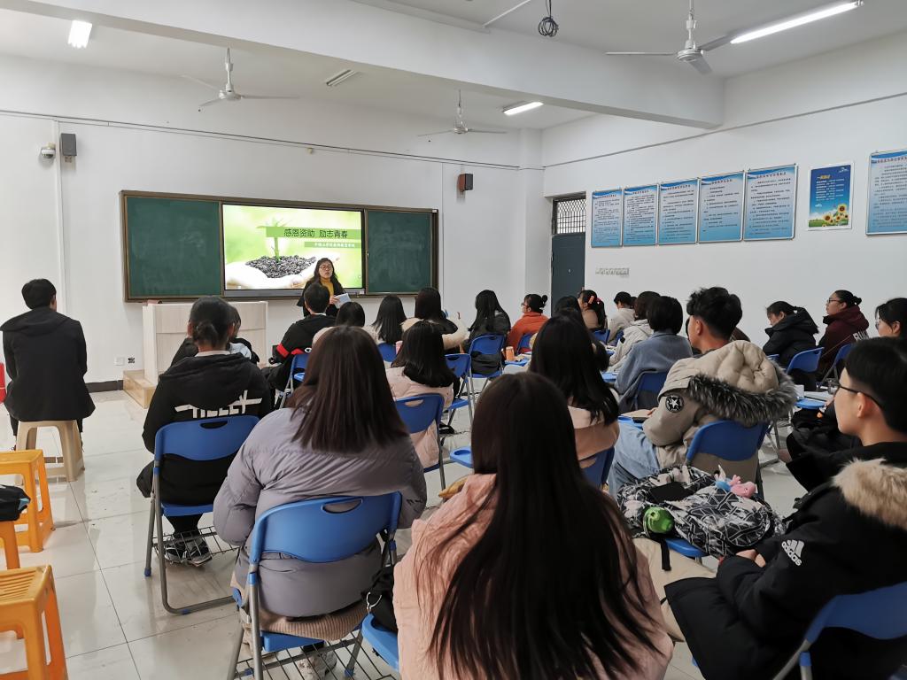 首先,邹老师向同学们介绍了学校的经济困难认定原则和标准,以及国家奖助学金和校级奖学金管理办法。同学们认真学习,并积极记录。接着,邹老师又向同学们详细说明了关于国家助学贷款的管理办法和还款救助办法。最后,向同学们开展了感恩和诚信教育。邹老师劝告同学们一定要诚信贷款,要对国家、学校保持一颗感恩的心,要对国家的帮扶政策常怀敬畏与感谢。