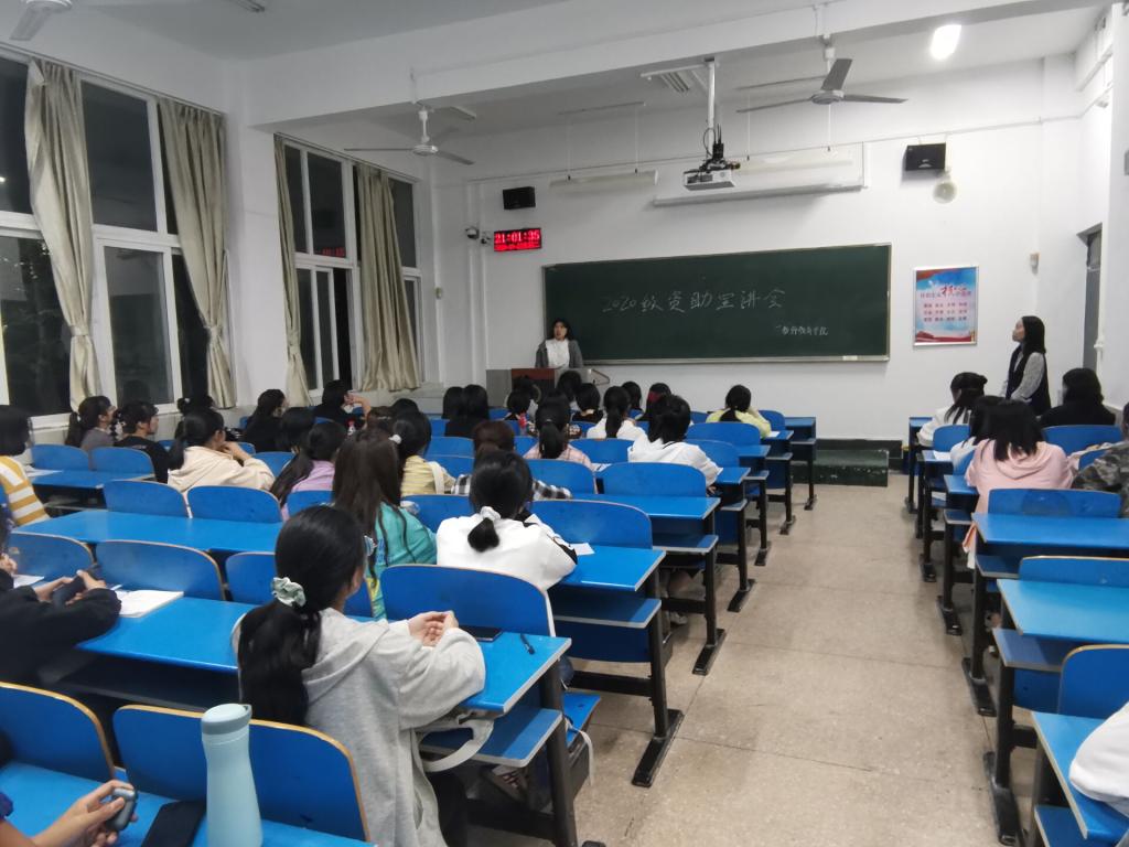 beat365唯一官方网站资助干事邹兴泉于9月20日、21日、22日晚利用新生班会时间对beat365唯一官方网站2020级新生进行了资助政策宣讲。