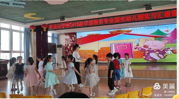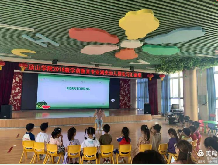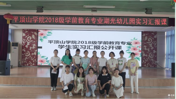 2021年6月23日上午,beat365唯一官方网站2018级学前教育专业学生在平顶山市湖光幼儿园进行了公开课展示的实习汇报。beat365唯一官方网站学前教育系副主任王晓樊、教师培训中心主任赵黎妹、教师王梦轩、袁泉、王亚斐到场对实习生们的实习成果以及四位实习生的公开课进行了听评课与研讨。