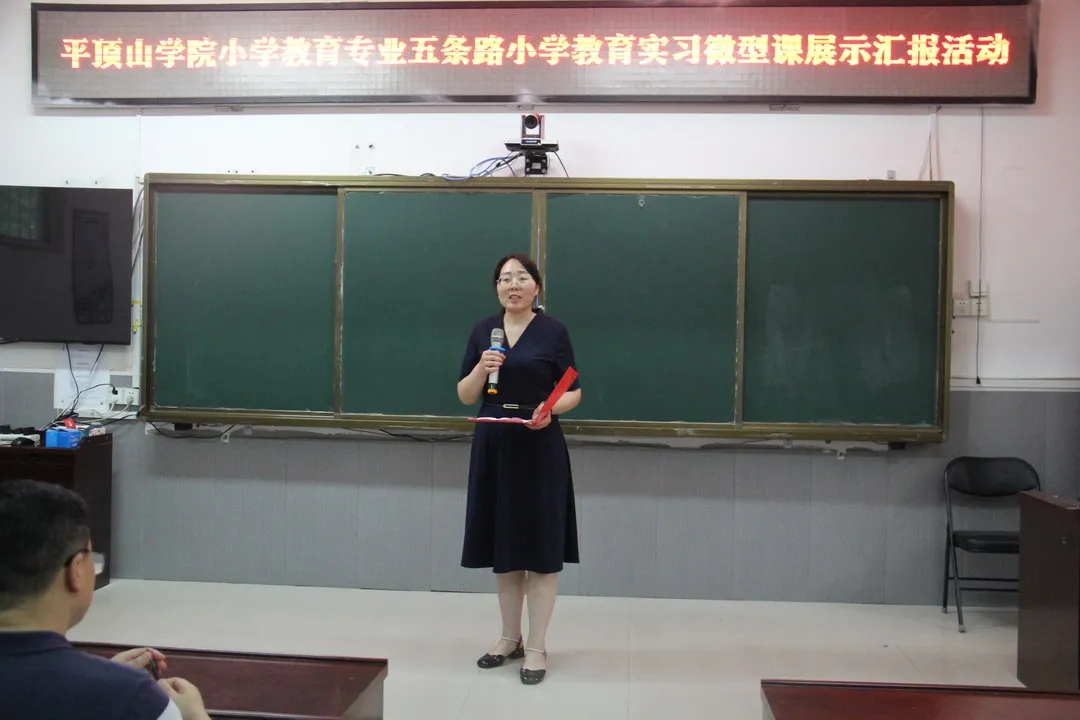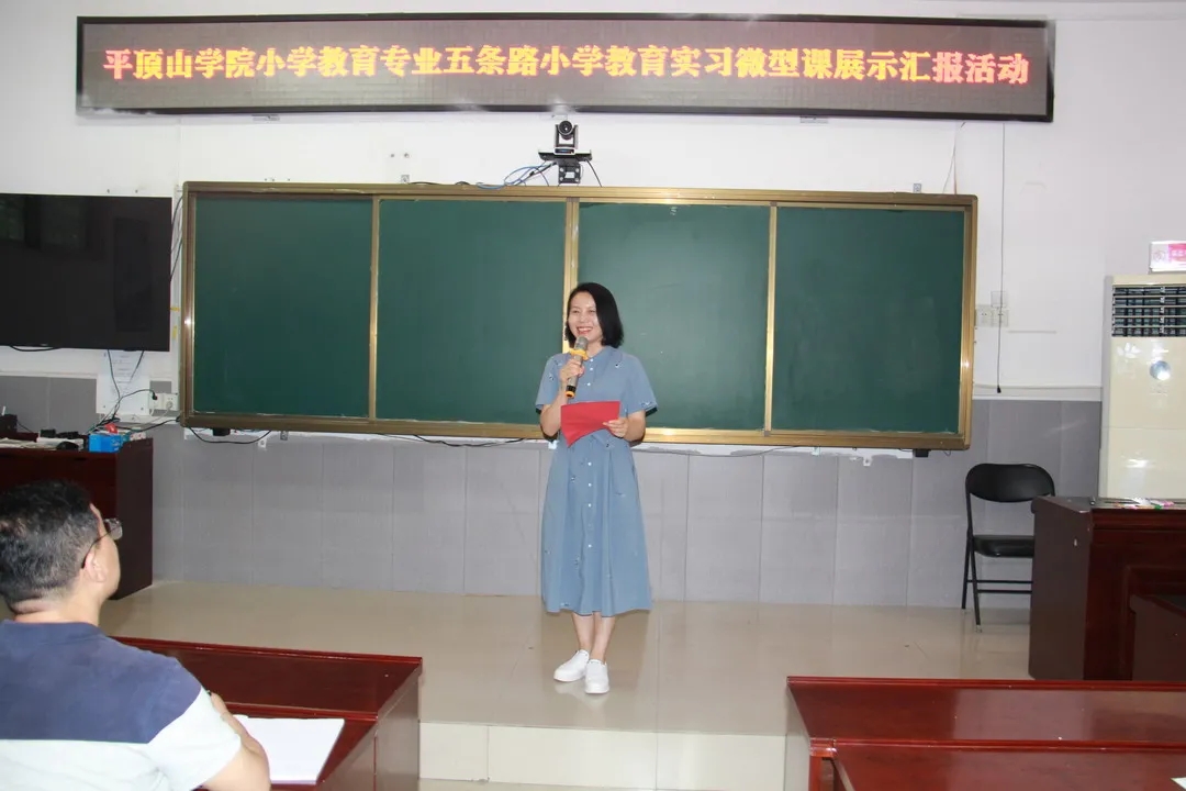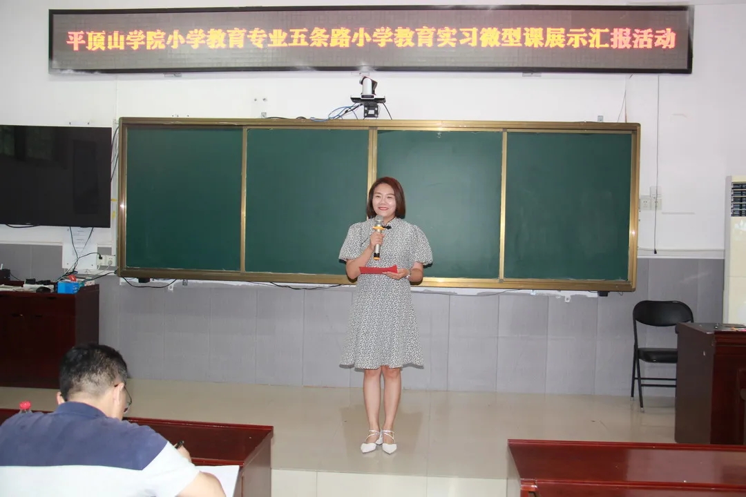 为提高实习生的专业素养和教学能力,考察实习生在实习期间的课堂教育教学水平,展示实习生的学习成果及课堂教学能力,2021年6月16日,beat365唯一官方网站小学教育专业五条路小学教育实习汇报展示活动在五条路小学如期举行。出席本次活动的有beat365唯一官方网站副院长王秋歌、beat365唯一官方网站小学教育系主任段恒耀、五条路小学校长李慧转、五条路小学业务校长吴素敏及学校领导班子成员和指导老师们,活动由教科研主任杨晓丹主持。