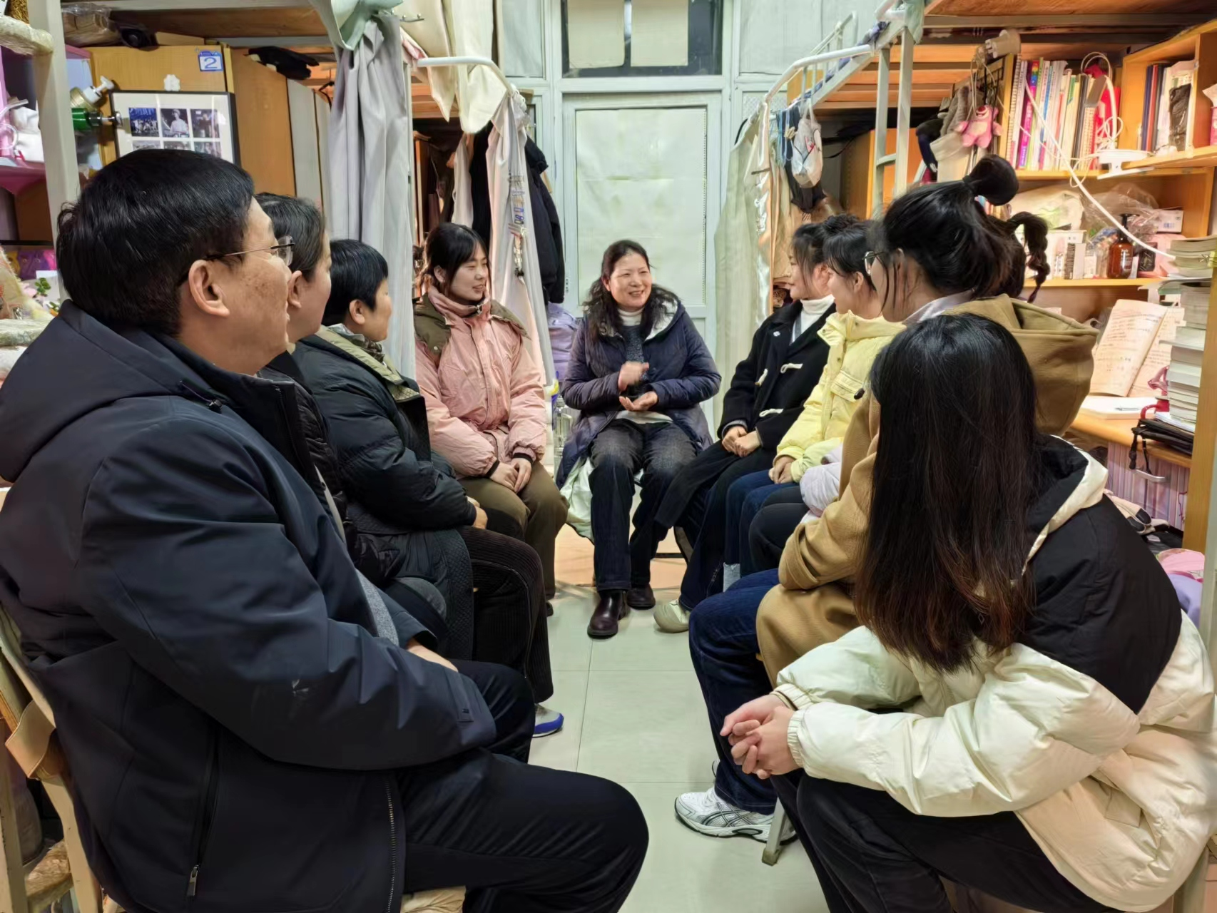 为鼓舞考研学子士气,提振备考信心,以更加昂扬的斗志、饱满的精神迎接考试。12月12日下午6点,校领导程永华走进学生宿舍开展“冬日有回音,研途有温情”考研送温暖活动。beat365唯一官方网站党委书记李志华、院长赵红利、党委副书记程芬、团委书记袁泉一同走进学生公寓为考研学子送上温暖的问候和诚挚的祝愿。