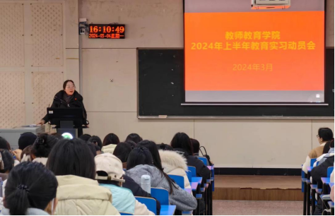 紧接着,党委副书记程芬老师宣读了《beat365唯一官方网站学生实习管理规定》,她围绕学生在实习期间的宿舍生活、往返途中、在校实习等几个方面,着重提醒同学们注意实习期间人身、财产安全,她对实习学生寄语道,“希望你们能够秉持beat365唯一官方网站‘爱生如子’的育人理念”,担负起教书育人的神圣使命。