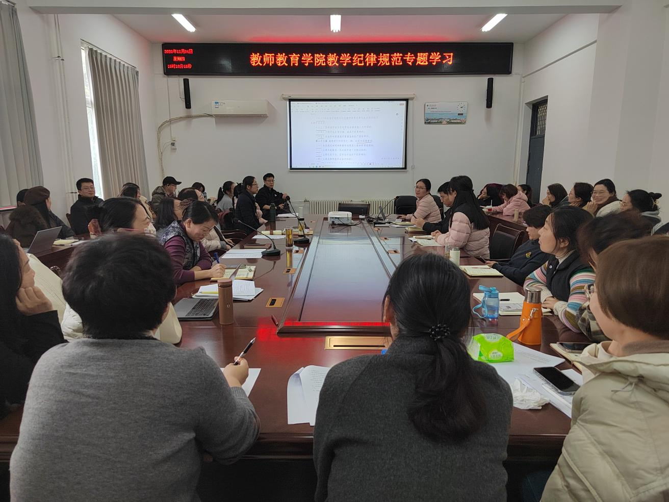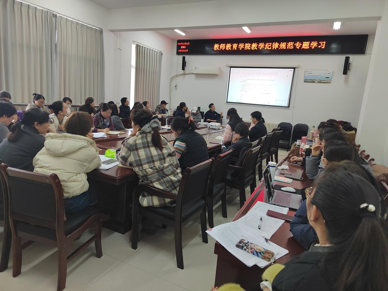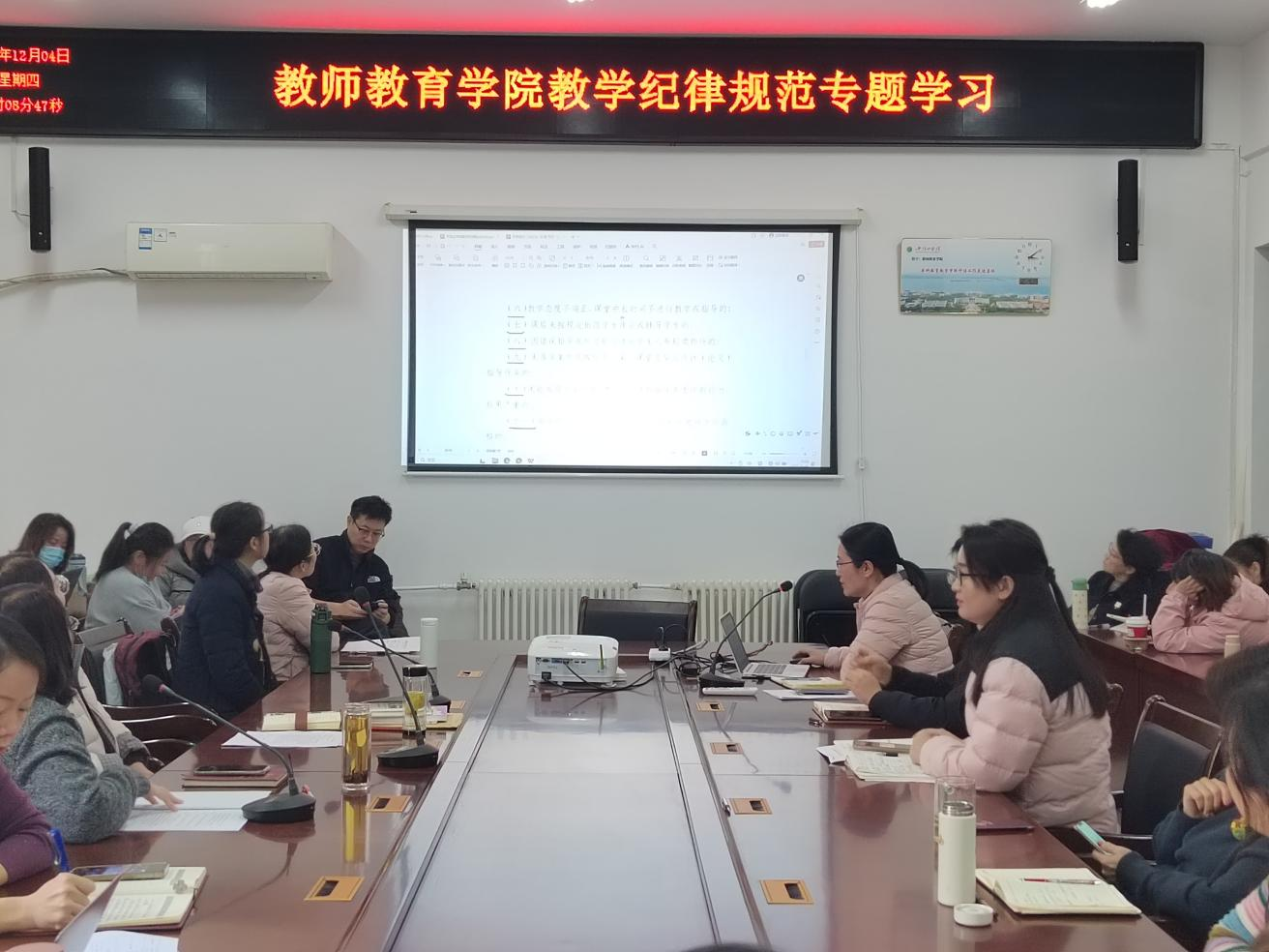 为进一步严明教学纪律,规范教学行为,维护正常教学秩序,强化师德师风建设,12月4日下午,beat365官网在艺术楼226会议室召开专题学习会,组织全体教师集中学习《beat365唯一官方网站教学纪律处分办法(试行)》。学院院长王小鹤出席会议并讲话,学习会由副院长王淑宁主持并领学。