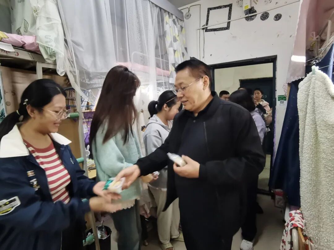 在本科生宿舍与自习室,慰问团队与留校学子亲切交谈。老师们详细询问了同学们留校期间的学习计划、生活安排与饮食情况,叮嘱大家合理规划时间,在专注学业的同时也要注意劳逸结合,遇到生活或学习上的困难及时与辅导员沟通。