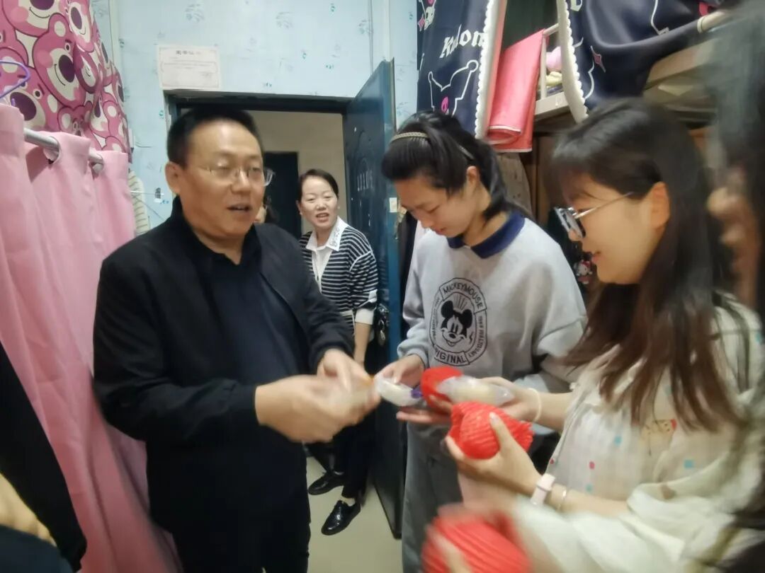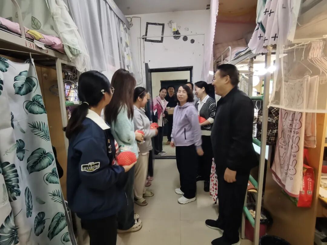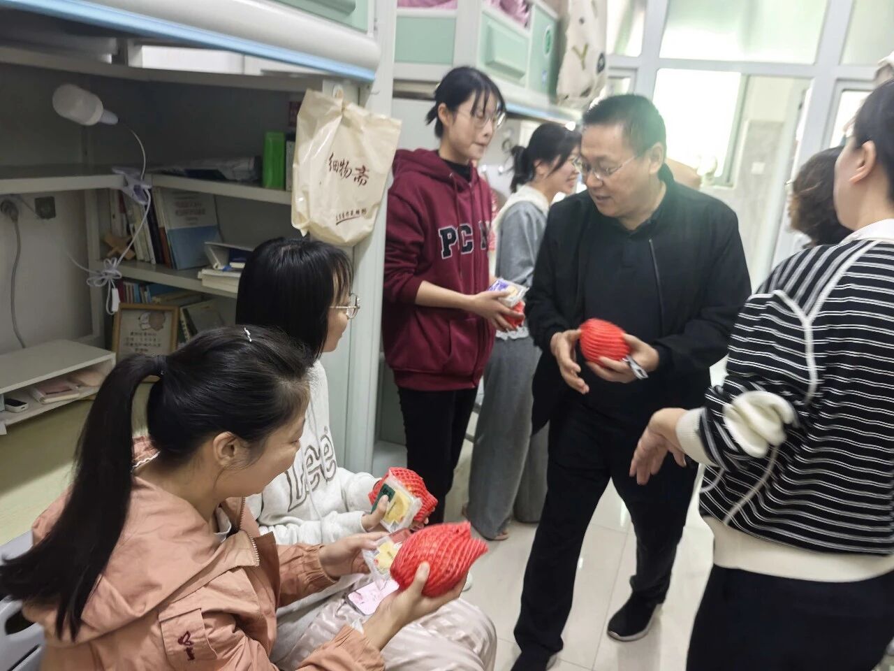 中秋佳节至,温情暖校园。10月5日上午9时,beat365唯一官方网站党委书记李志华、院长王小鹤、副书记程芬、副院长段恒耀及各年级辅导员组成慰问团队,带着象征团圆的月饼与寓意红火的石榴,分赴校园各处,为留校的本科生与研究生送去节日的祝福与学院的关怀。