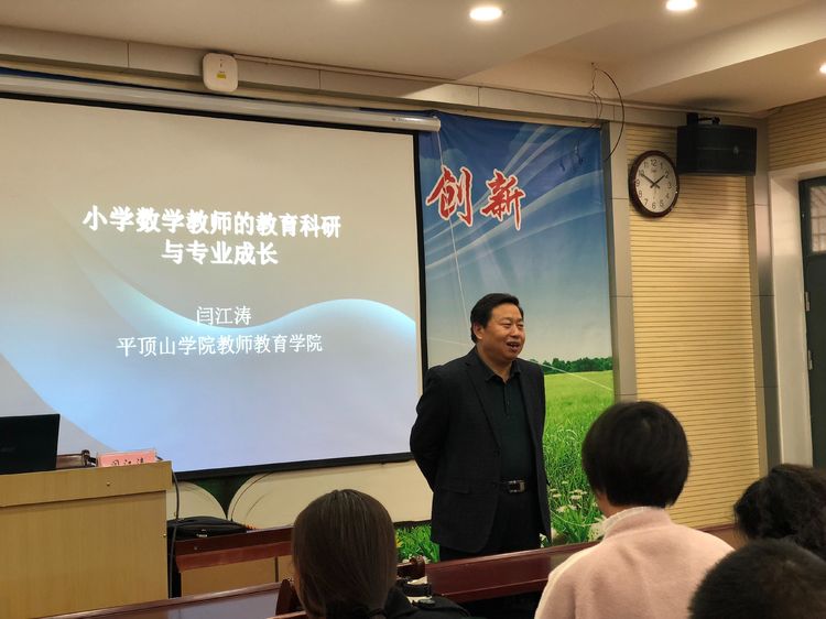 下午2:30,beat365唯一官方网站闫江涛院长为国培学员带来题为《小学数学教育科研方法》的讲座。