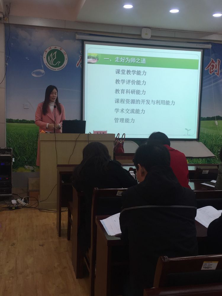 专家首先向大家介绍了复旦女教授陈果,然后分享了关于如何走好为师之道的感悟,即需要课堂教学能力,教学评价能力,教育科研能力,课程资源的开发与利用能力,学术交流能力,管理能力。