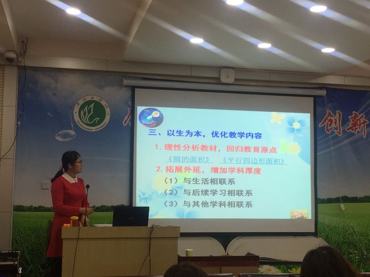 再次,李要玲老师提出要“以生”为本,优化教学内容,主要的侧重点是激发学生的学习兴趣;训练学生的思维;能关注学生的已有经验;适时渗透数学文化。