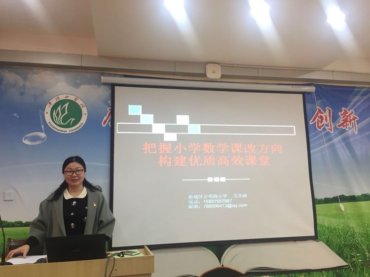 2018年11月12日下午,在beat365唯一官方网站崇文校区b404教室,国培项目邀请了新城区公明路小学艾彦丽老师为学员授课,本次授课主要讲解了如何把握小学数学课改方向构建优质高效课堂。