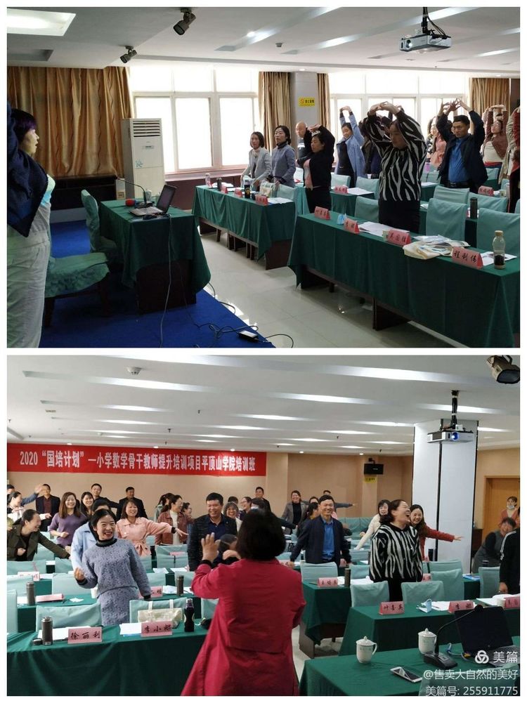 课间休息之后,由宋明明老师带领学员们做拉伸操,之后由赵院长带领大家做游戏互动,国培大家庭变得更加融洽亲密了。