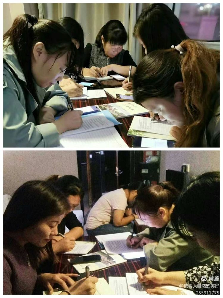 夜色像奇大无比的黑布,悄悄的伸开来。黑夜不能阻挡学员们学习的热情,大家都自发的在一起认真整理每日心得体会。