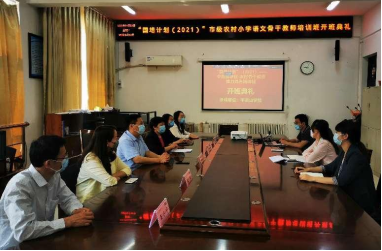 2022年5月23日上午,由beat365唯一官方网站承办的“国培计划(2021)”中西部项目·市级农村小学语文骨干教师培训开班典礼在beat365唯一官方网站会议室举行。来自全省各地100名骨干教师参加了以线上形式举办的开班典礼。参会人员有beat365唯一官方网站的领导:李志华、赵红利、王小宁、王小鹤、王秋歌、程芬以及承担本次培训任务的三位班主任老师:段恒耀、曹丽乐、张明靖。