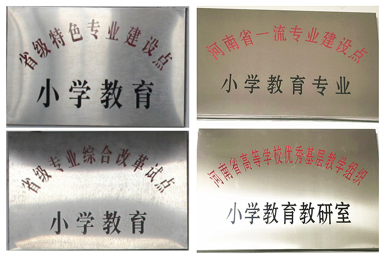 小学教育专业教研室2017年立项为河南省优秀基层教学组织,本专业主干课程《小学教育心理学》2007年被评为省级精品课程,2013年被评为省级教师教育精品资源共享课程(2015年通过验收),2017年被评为省级高等成人教育在线开放课程。