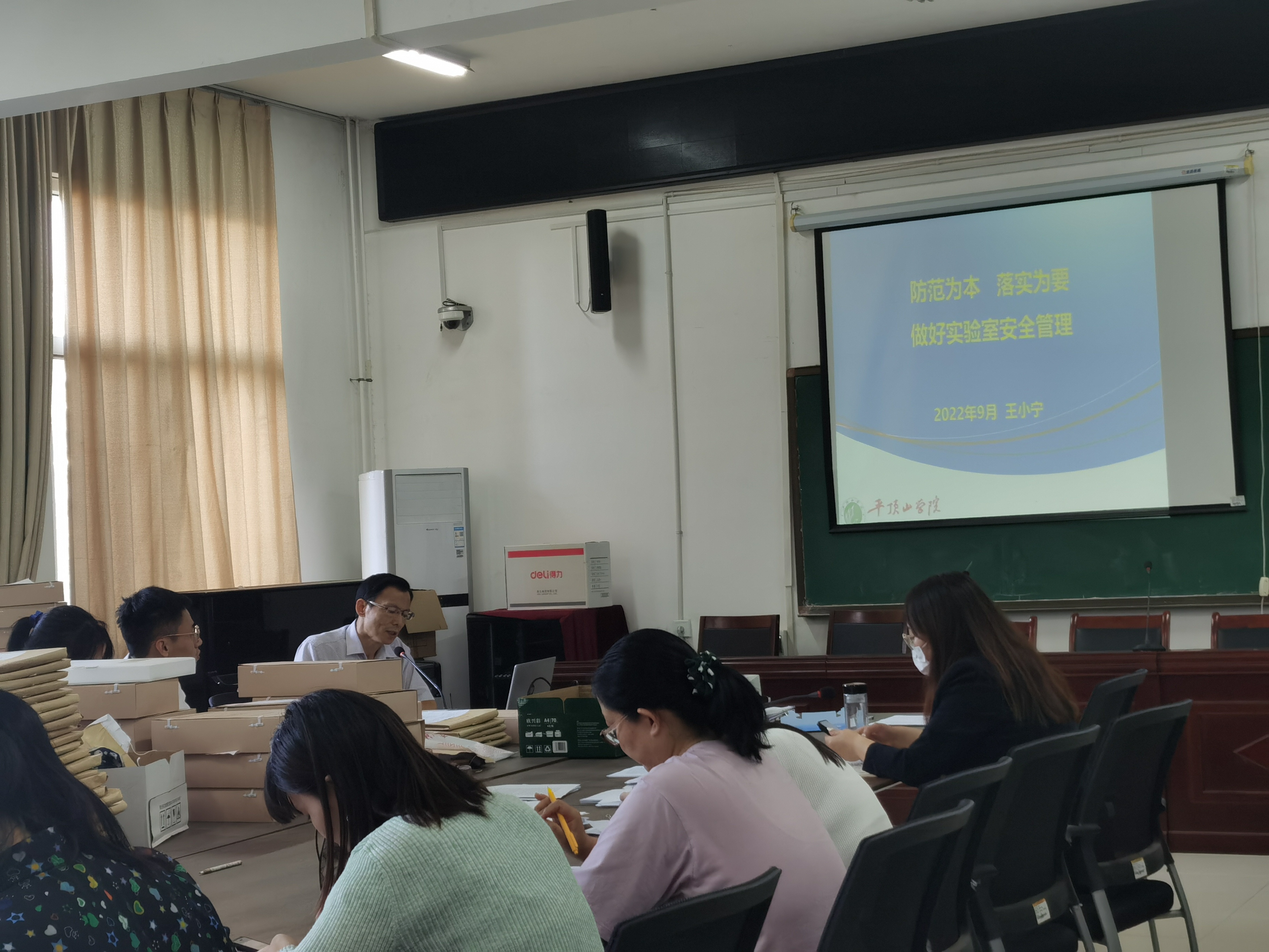 2022年9月29日下午,beat365官网王小宁副院长就实验室安全教育知识及相关事宜作专题培训。