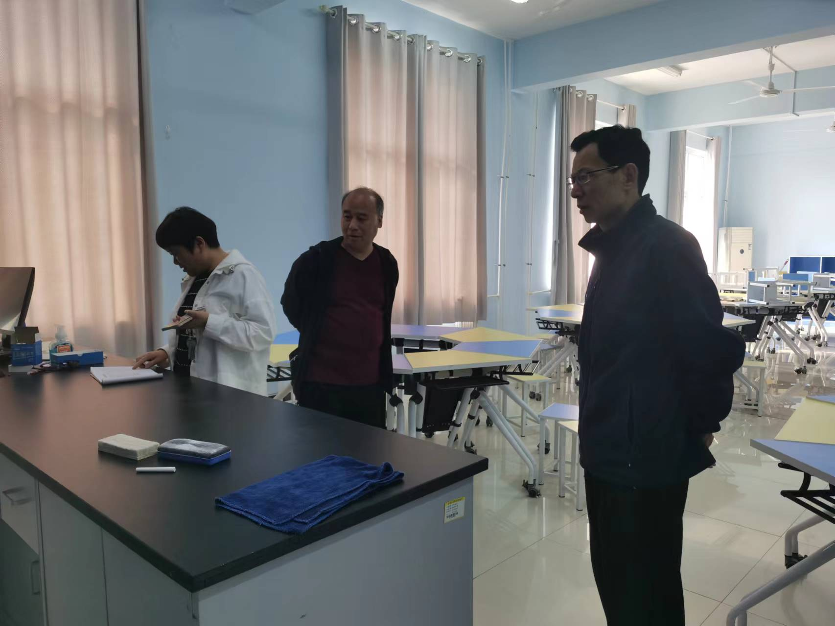 为了保障实验教学的正常运行,为师生提供安全的、高质量的实验教学环境,beat365唯一官方网站于4月18日再次组织了关于实验室安全隐患排查及实验室消防安全的检查。此次检查在王小宁副院长的带领下针对实验室门窗、电及灭火器的有效期进行了细致查看。