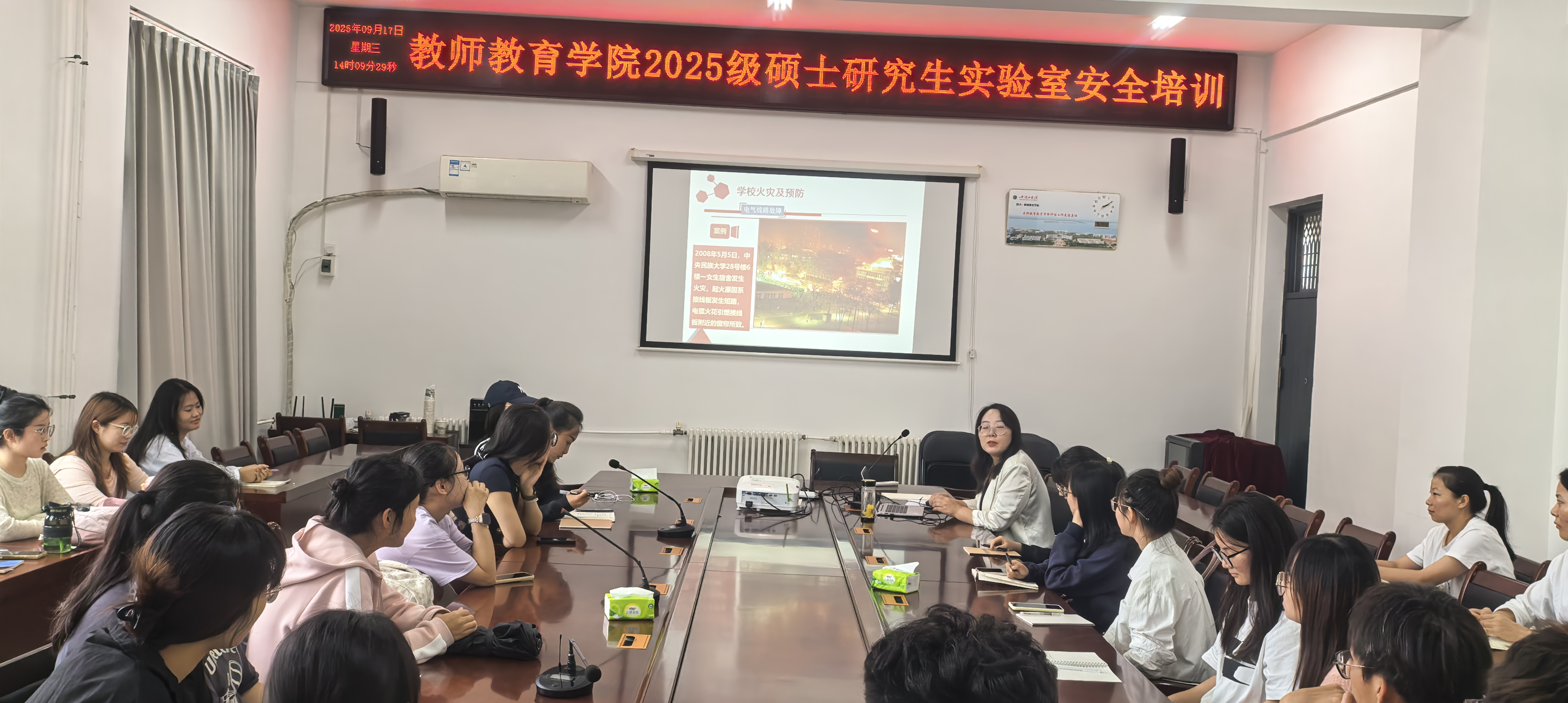 2025年9月17日14点,beat365官网王秋歌副院长在艺术楼A226办公室就实验室安全教育知识及相关事宜为全体2025级研究生作专题培训。