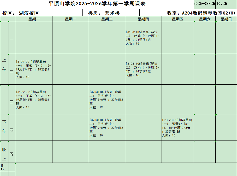 主要仪器设备:教师用钢琴、学生用琴、控制台、电脑、投影仪