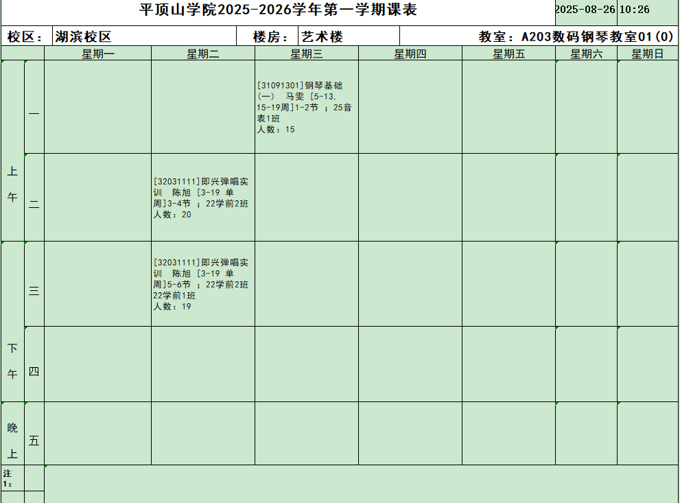 主要仪器设备:教师用钢琴、学生用琴、控制台、电脑、投影仪