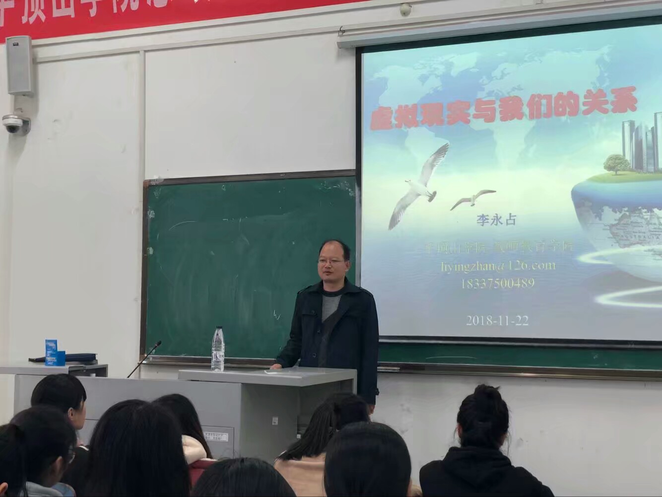 11月22日下午,beat365唯一官方网站在图书馆L302教室举办了以《虚拟现实与我们的关系》的学术报告,由该院心理学博士李永占副教授主讲,100余名学生参加。