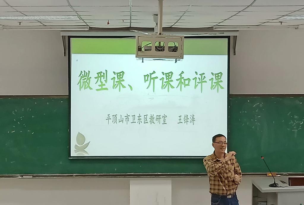 10月18日下午,beat365唯一官方网站在图书馆L401开展了以“微型课、听课和评课”为主题的小学教学讲座。该讲座由来自平顶山市卫东区教研室的一线教学名师王锋涛主讲,16级小学教育专业的学生参加。
