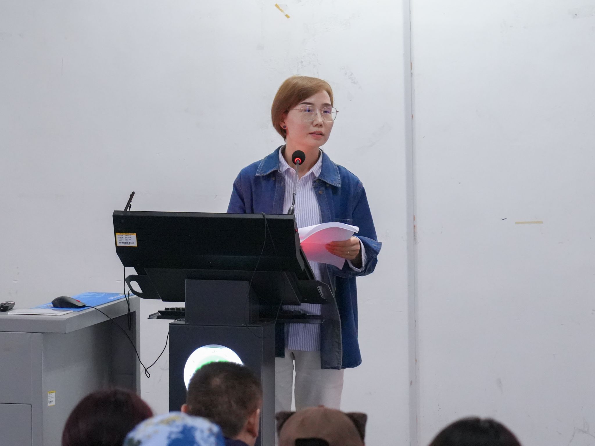 王院长代表学院致新生欢迎辞。她详细介绍了学院的专业特色与硕士点建设成果,鼓励新生充分利用学院优质资源,以“有理想信念、有道德情操、有扎实学识、有仁爱之心”的“四有”好老师为目标,在专业学习与实践中锤炼自我,为未来投身教育事业筑牢根基。