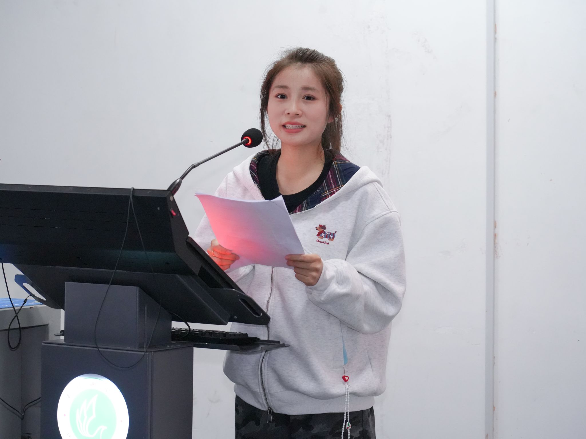 22级学前教育专业李玉珠同学作为老生代表发言。她分享了自己从大一懵懂适应、大二深耕专业,大三投身社会实践、参与幼儿园实习的成长历程,用辅导学生、与幼儿相处的温暖故事,传递了对教育事业的热爱,并建议新生勇于尝试、积极参与各类活动与实践,在探索中明确方向、提升能力。